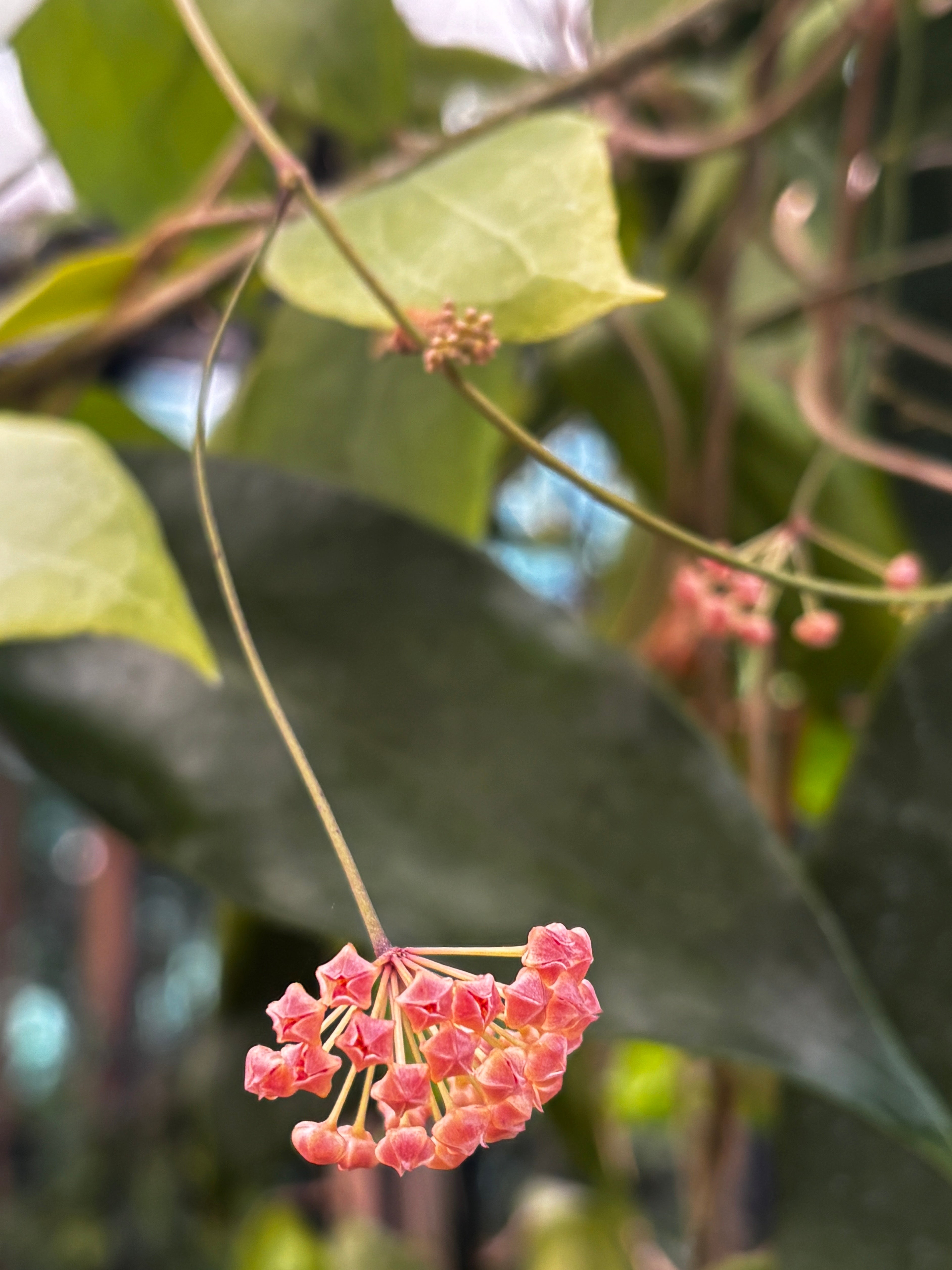Blooms: Baby pink flowers measuring 7mm across, with darker pink / yellow-centred corona. Up to 25 flowers per umbel. Flowers last up to 2 days.