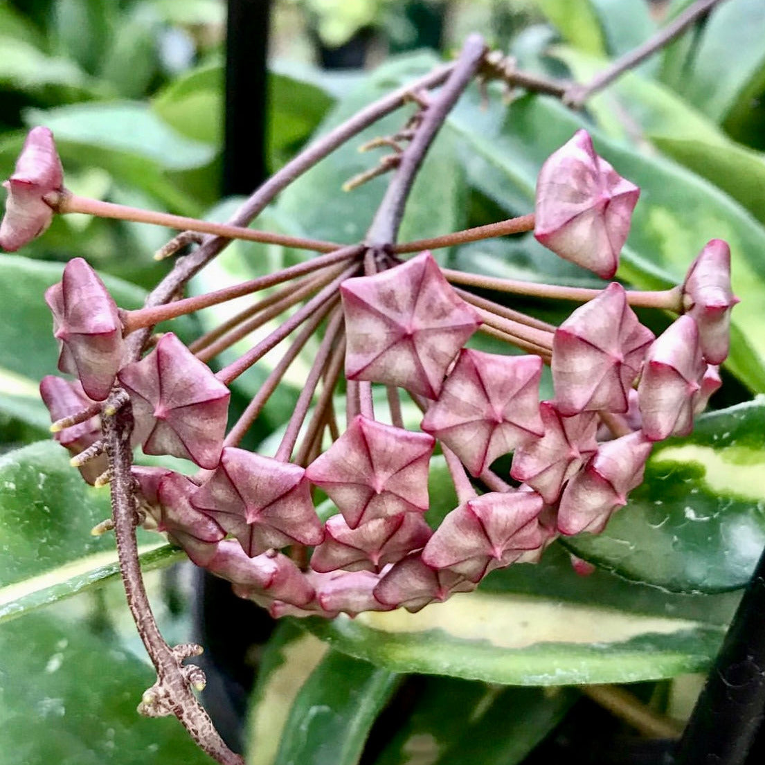 Blooms: Pink to dark pink, star-shaped flowers, up to 15mm across, with magenta-centred white corona. Up to 40 flowers per umbel. Fragrance just like chocolate! Flowers last up to 7 days.