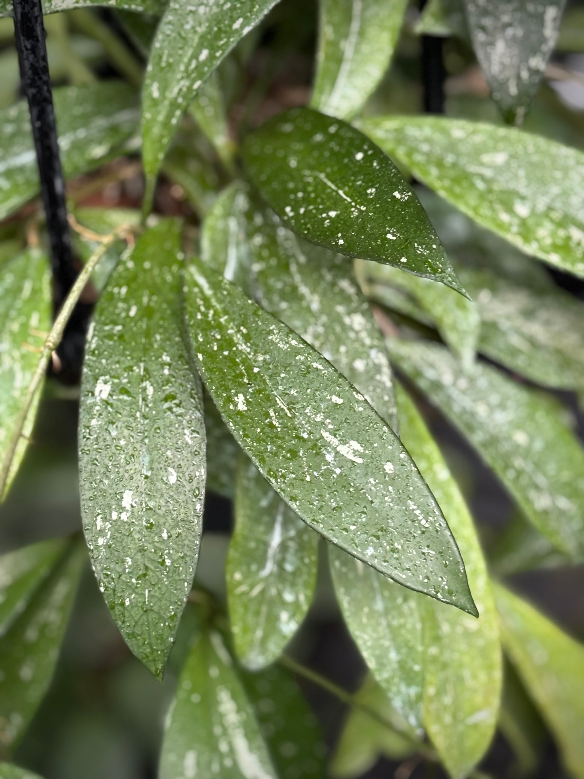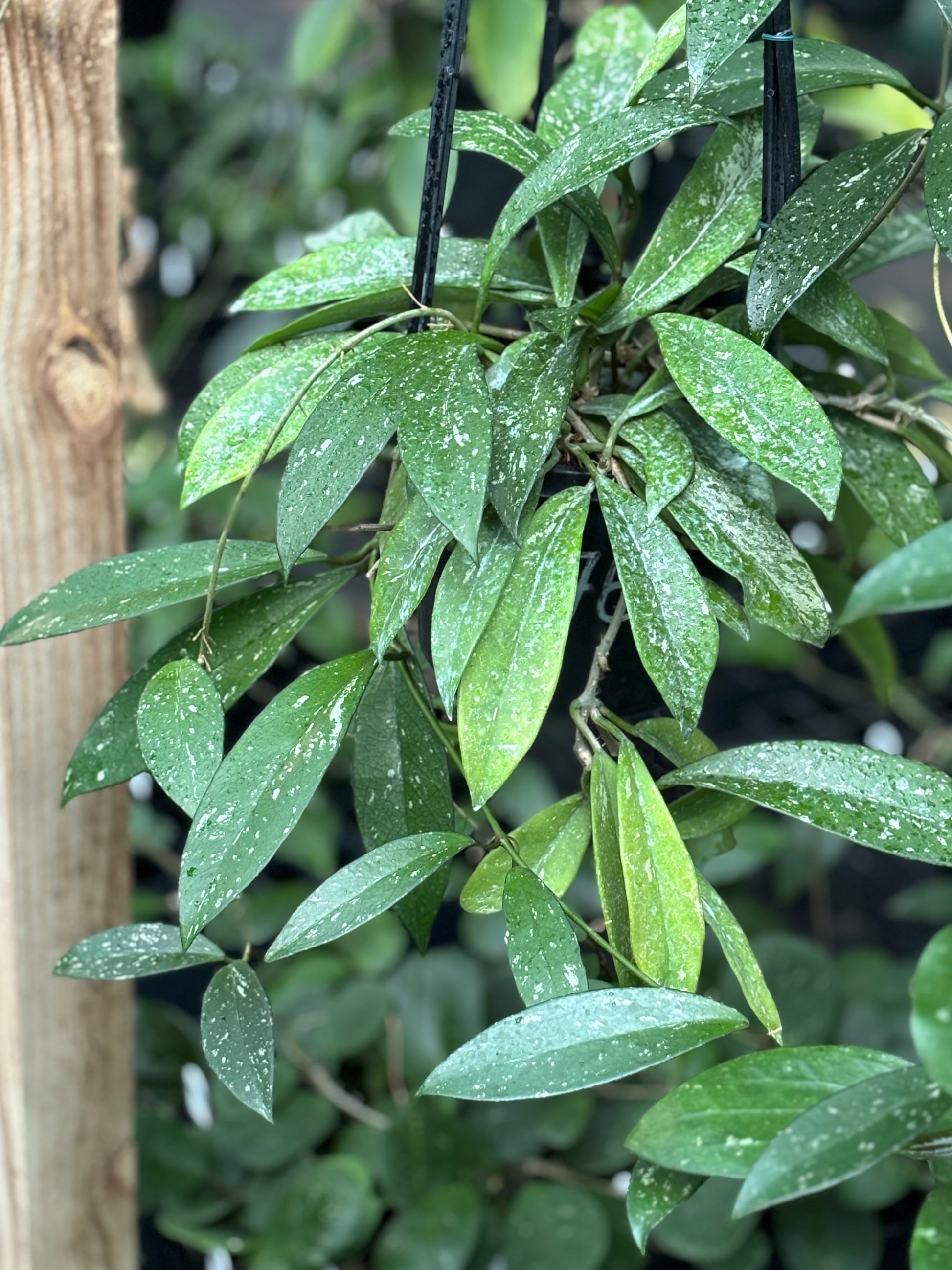 Considered by some to have the best foliage amongst the pubicalyx, this hoya has shiny, oval-shaped leaves heavily flecked with silver spangles.